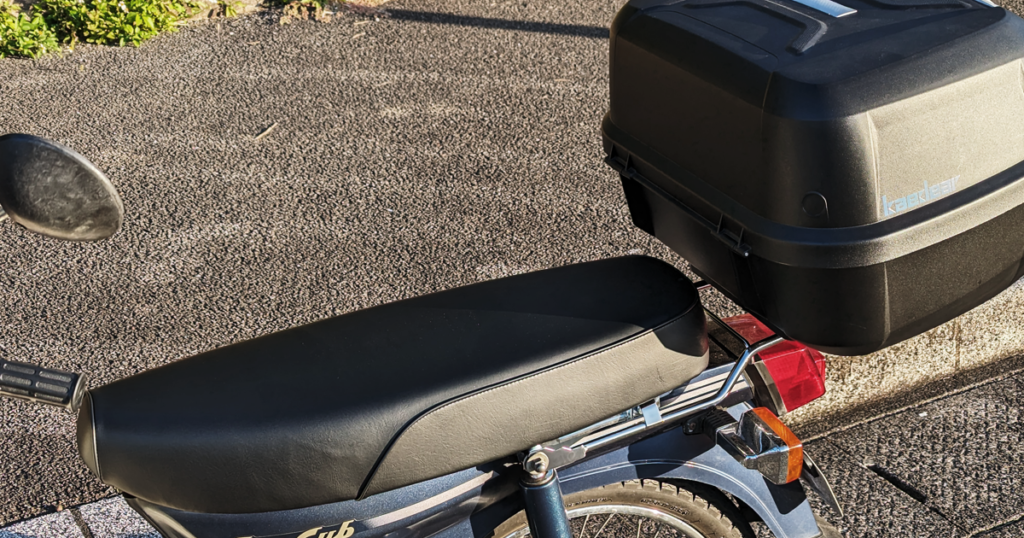 正直、カブのシートはノーマルの形状が至高と思ってるのですが、身長180cmオーバーの私にとっては下部のノーマルシートは短すぎるのです( ノД`)シクシク…